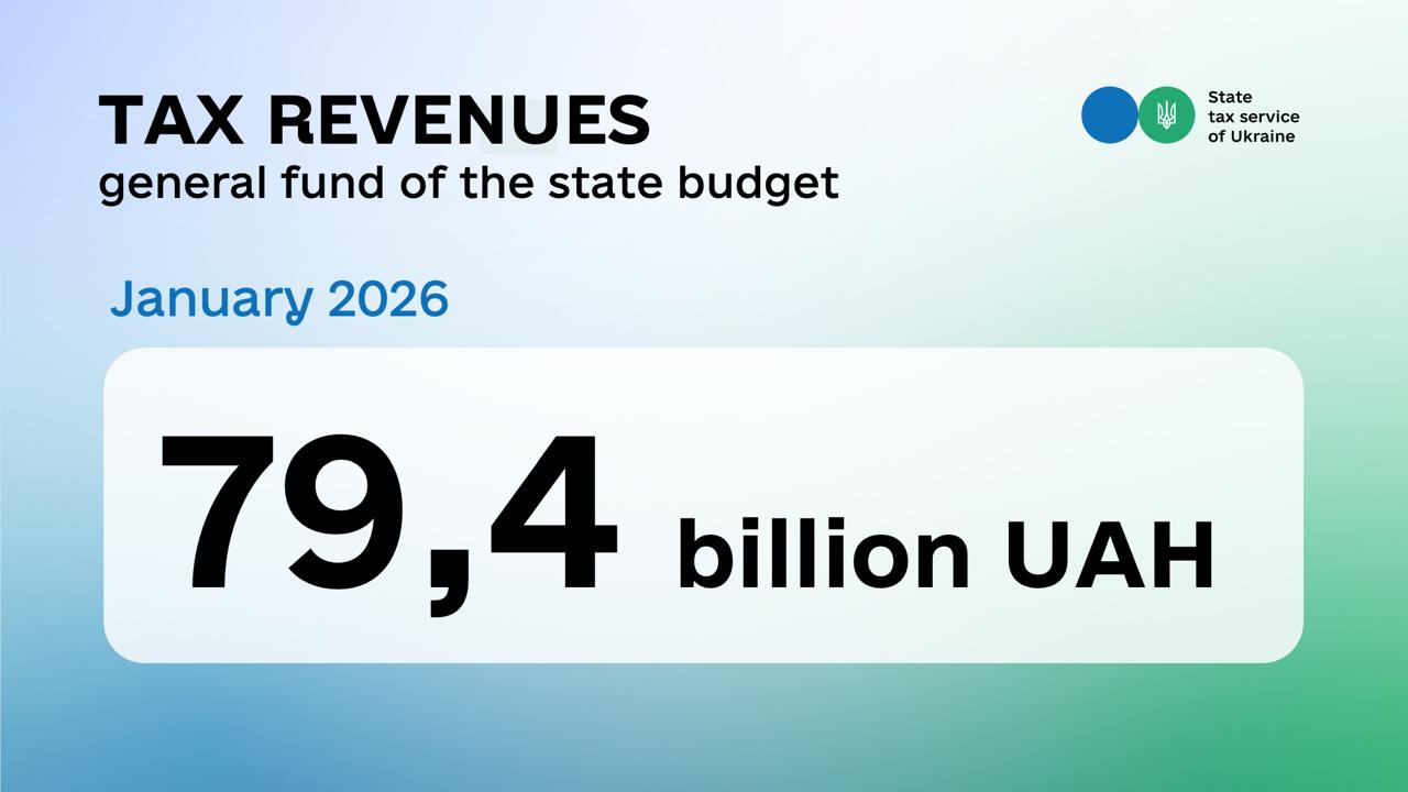 General fund of the state budget received 79.4 billion UAH of taxes and levies controlled by the State Tax Service in January 2026 (91.8% of the plan). This was informed by acting Head of the State Tax Service Lesya Karnaukh on the Facebook page