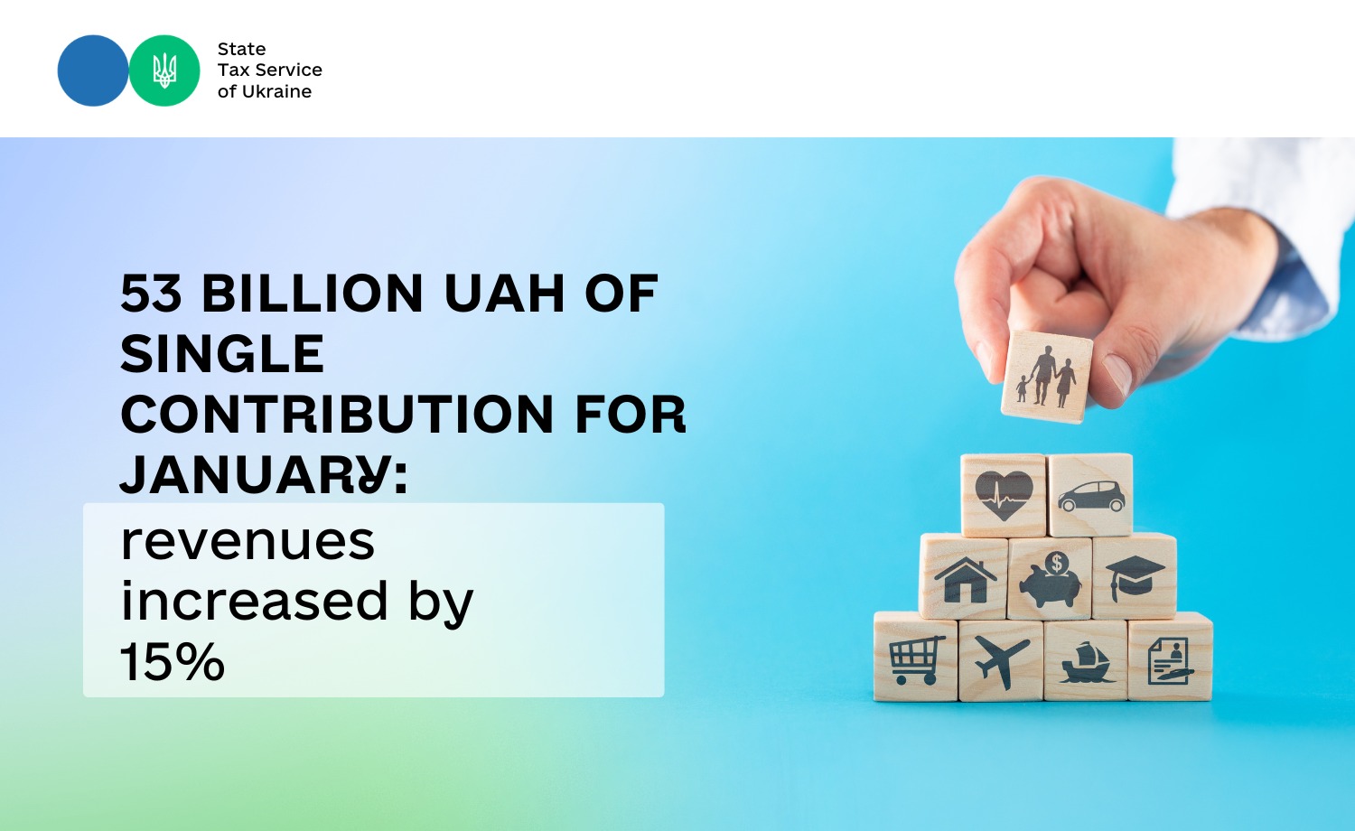 Revenues from single contribution to obligatory state social insurance amounted to 53 billion UAH in the first month of this year.