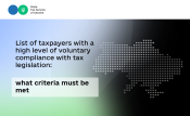 Familiarize yourself with the full list of criteria, requirements and benefits for taxpayers included in the List of taxpayers on the State Tax Service’s web portal in the "Territory of high tax trust level" section at the link https://tpd.tax.gov.ua/.