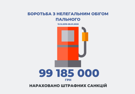 З 13 грудня 2019 року по 8 січня 2020 року ДПС за фактами незаконного обігу пального нараховано 99,185 млн грн штрафних санкцій. Зокрема, виявлено  6 фактів оптової торгівлі пальним без ліцензії, за якими нараховано штрафні санкції на загальну суму 3 млн грн. Також встановлено 51 випадок роздрібної торгівлі пальним без належних документів, накладені штрафні санкції на суму 11,75 млн грн. За фактом безліцензійного виробництва пального на порушника накладено санкції в розмірі 1 млн грн.