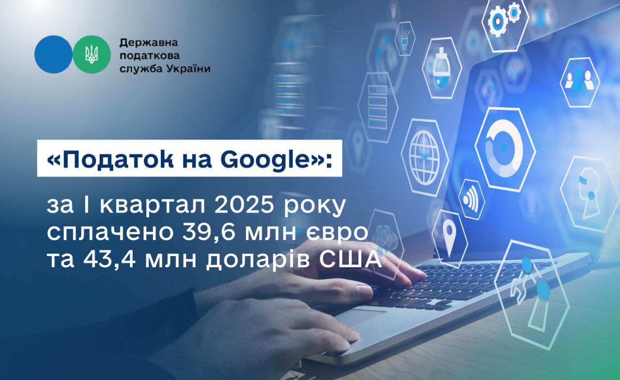 «Податок на Google»: за І квартал 2025 року сплачено 39,6 млн євро та 43,4 млн доларів США