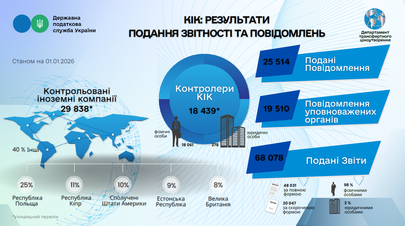 КІК: результати подання звітності та повідомлень (станом на 01.01.2026)