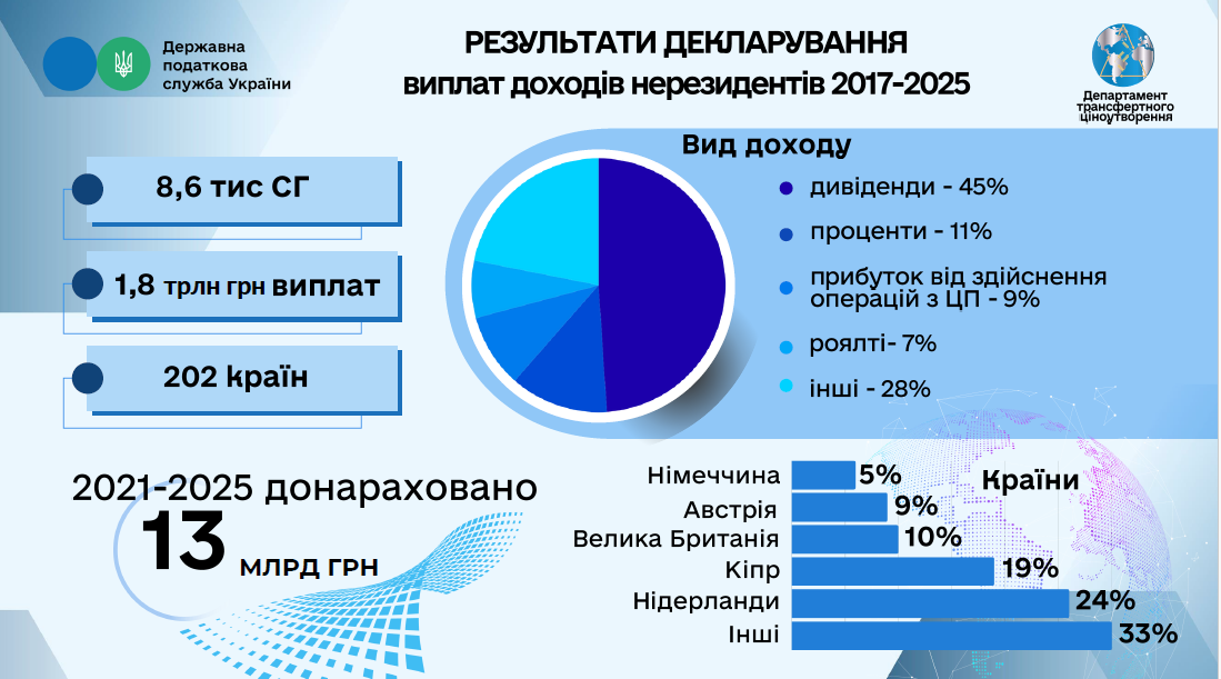 Результати декларування виплат доходів нерезидентів 2017-2025