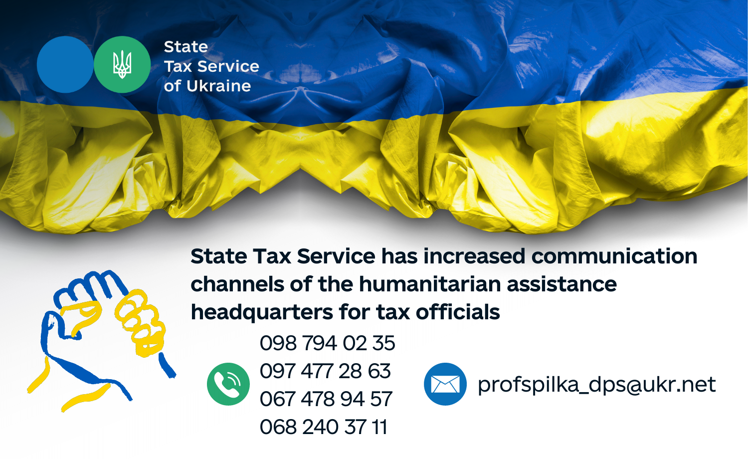 In the State Tax Service to address a number of humanitarian problems that were caused by aggression of the Russian Federation, there is working humanitarian assistance headquarters for tax officials created by decision of acting Chairman of the State Tax Service Tetiana Kirienko with the All-Ukrainian trade union of employees of the STS and its bodies.