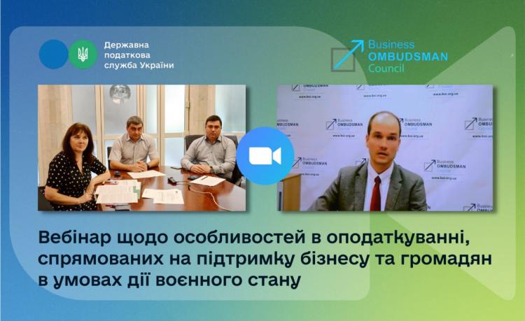 Taxation peculiarities aimed at supporting business and citizens during the martial law is the first topic of webinar of the State Tax Service and the Business Ombudsman Council