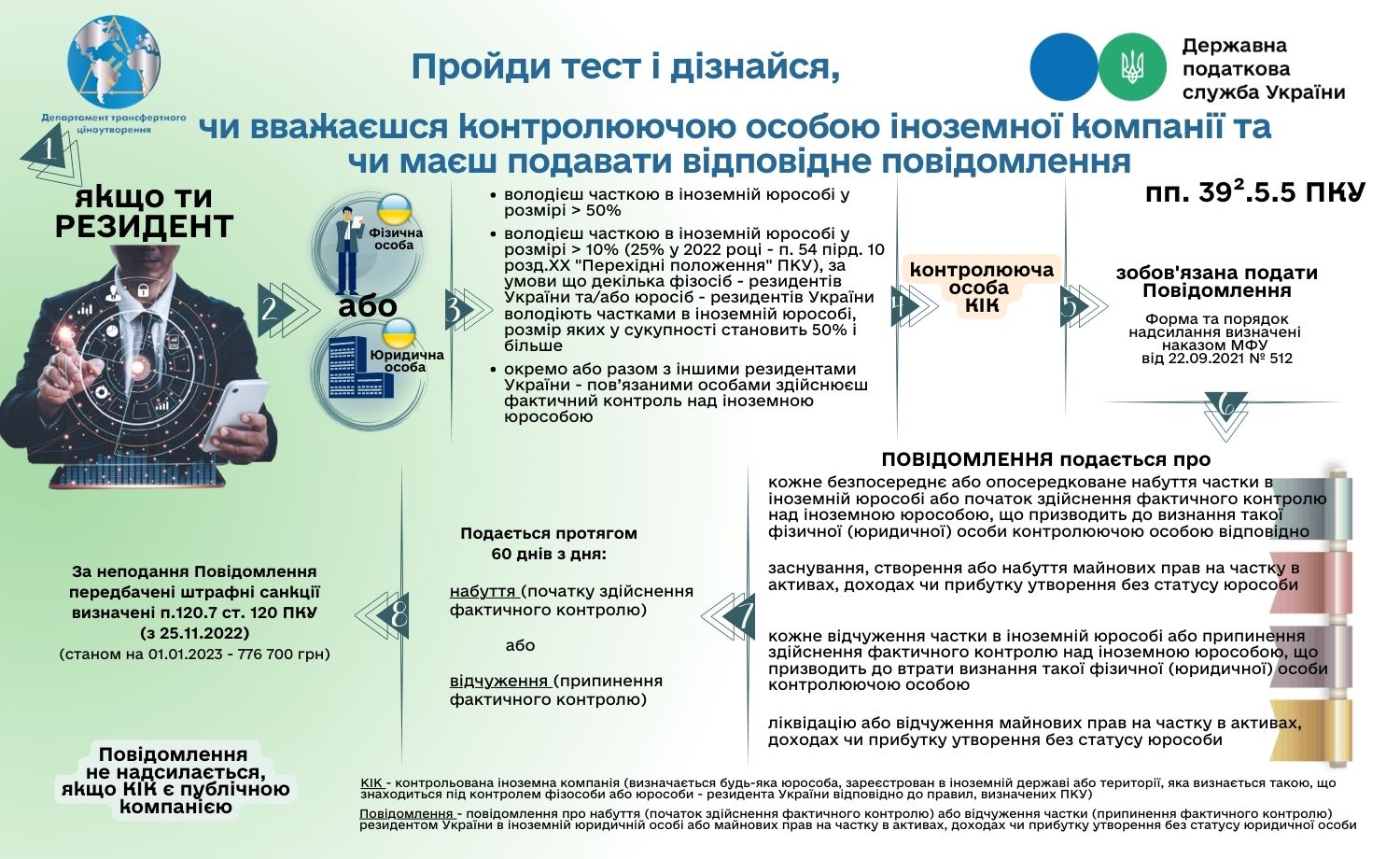 Sub-paragraphs 392.5.5 Paragraph 392.5 Article 392 stipulate that individual-resident of Ukraine or legal entity who is resident of Ukraine is obliged to inform the controlling body about: