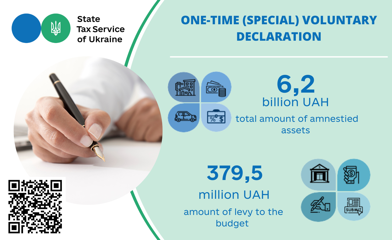 State Tax Service of Ukraine reports that 6.2 billion UAH has been declared as a part of the "tax amnesty" and the one-time levy has amounted to 379.5 million UAH.