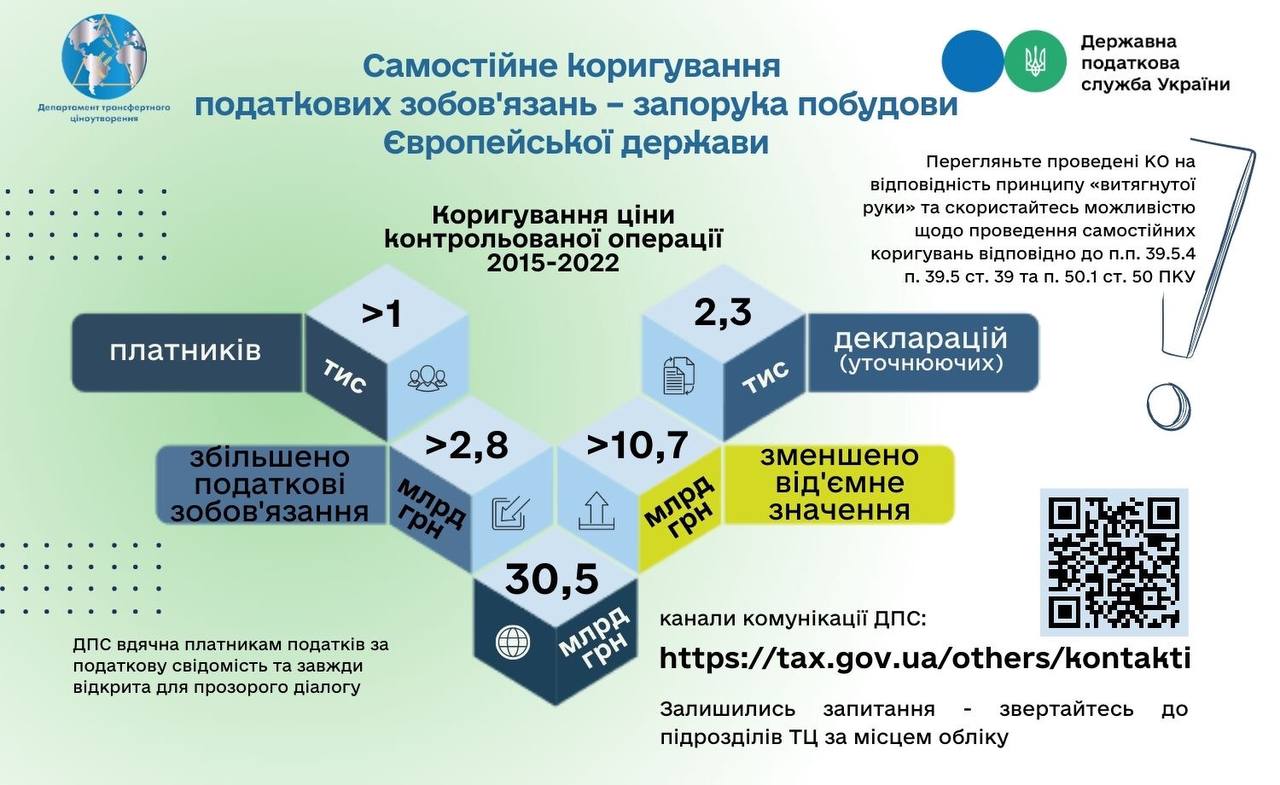 Taking into account above specified, the State Tax Service recommends taxpayers to review audits carried out for compliance with the "arm's length" principle and take advantage of opportunity to make independent adjustments according to Sub-paragraph 39.5.4 Paragraph 39.5 Article 39 and Paragraph 50.1 of Article 50 of the Tax Code of Ukraine. And in case of additional questions, contact the State Tax Service for their clarification and solution.
