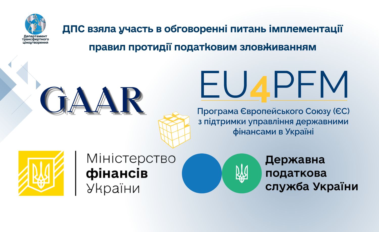 As a part of cooperation project with the European Union, Ukraine is implementing the General Anti-Tax Abuse Rule (GAAR). Representatives of the State Tax Service of Ukraine took part in an online seminar held jointly with the EU4PFM and the Ministry of Finance of Ukraine. Event was devoted to implementation of this rule by Ukraine.