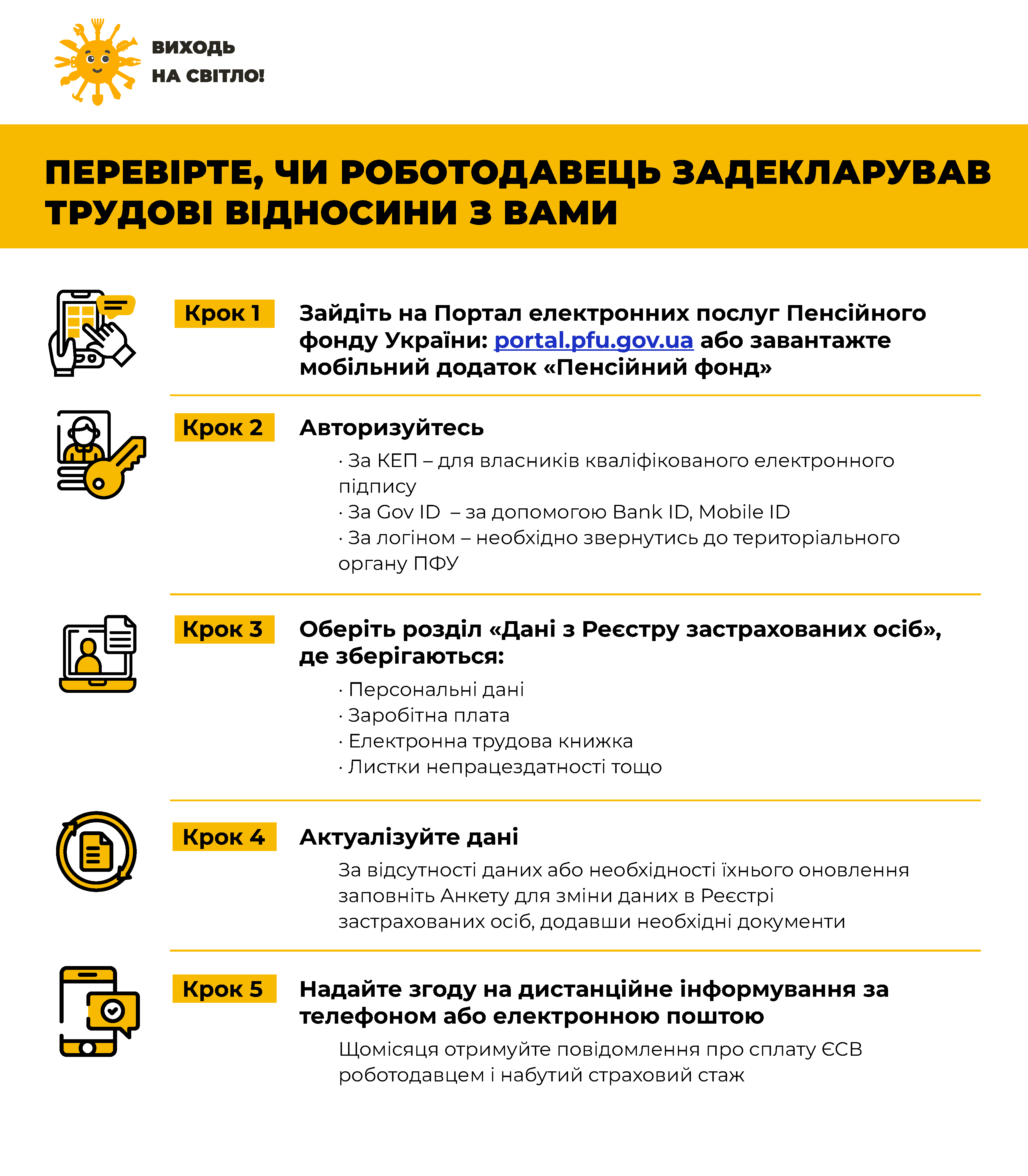 To find the electronic employment book, it is needed to log in to personal account on the electronic services portal of the Pension fund of Ukraine.