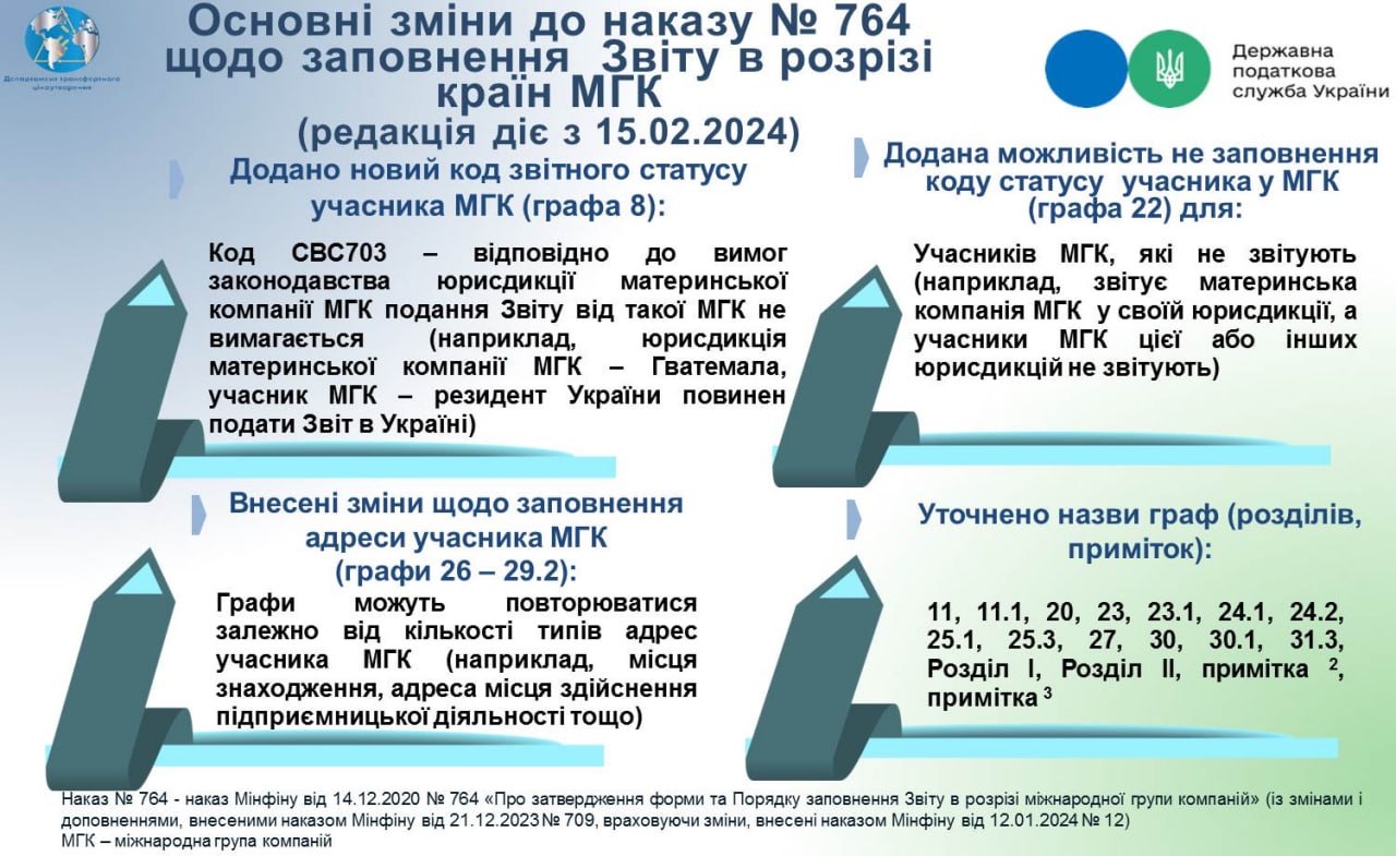 State Tax Service of Ukraine reminds that Order of the Ministry of Finance of Ukraine № 709 as of 21.12.2023 "On amendments to Order of the Ministry of Finance of Ukraine № 764 as of 14.12.2020" entered into force on 15.02.2024 (registered in the Ministry of Justice of Ukraine on 04.01.2024 under № 28/41373) (hereinafter – Order № 709) with changes introduced by Order of the Ministry of Finance of Ukraine № 12 as of 12.01.2024 (registered in the Ministry of Justice of Ukraine on 15.01.2024 under № 80/41425).