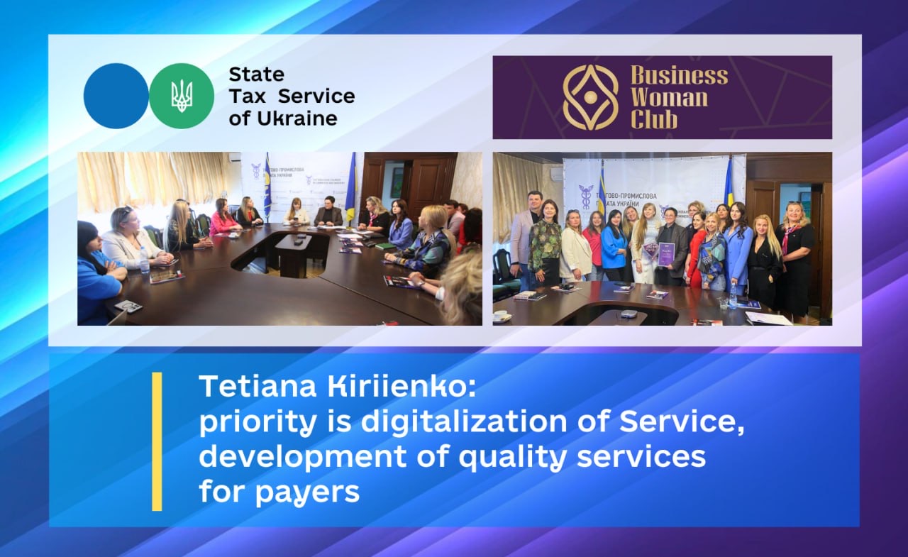 Acting Head of the State Tax Service of Ukraine Tetiana Kiriienko took part in a meeting with participants of the International Business Woman Club, which was held at the Chamber of Commerce and Industry of Ukraine. Transformation of the State Tax Service in conditions of the martial law, current taxation matters and achievements in crisis management were discussed in the course of event.