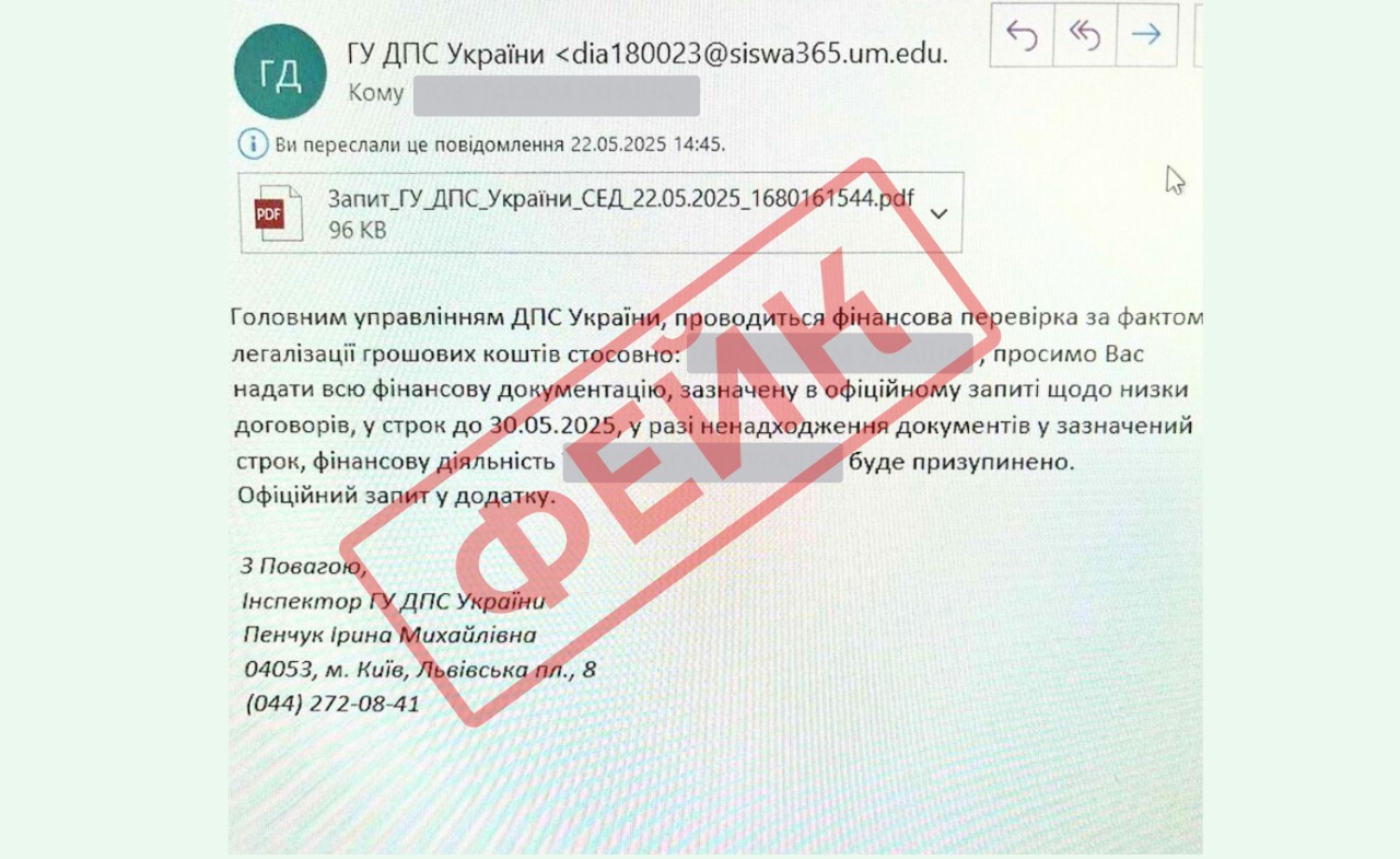 We record new wave of mass distribution of fake mails allegedly from the State Tax Service. This is second such wave in the past week. This was informed by Head of the State Tax Service of Ukraine Ruslan Kravchenko in the Telegram channel.
