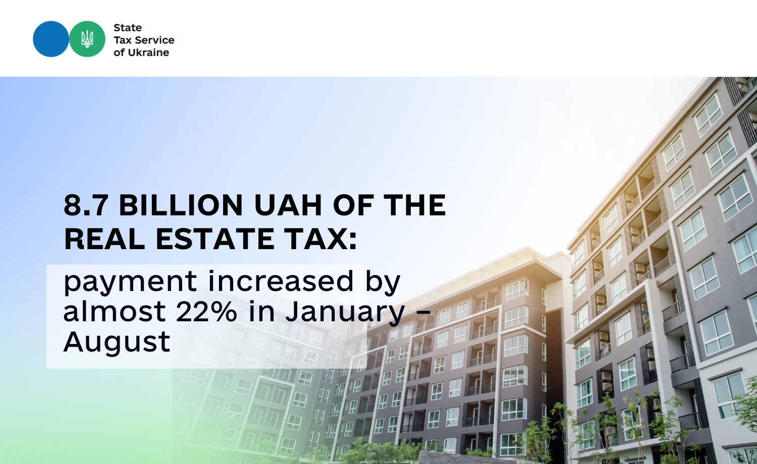 Property owners paid 22% more property tax this year than in January – August last year. Almost 8.7 billion UAH was transferred to local budgets, which is 1.6 billion UAH more than the corresponding figure in 2024.