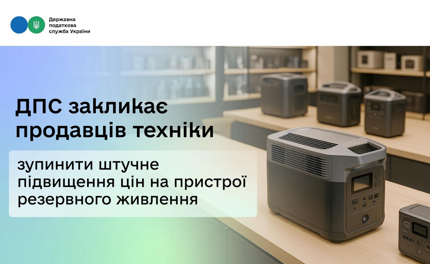 State Tax Service of Ukraine calls on equipment sellers to stop artificially increase prices for the backup power devices. This was informed by acting Head of the State Tax Service Lesya Karnaukh on the Facebook page.
