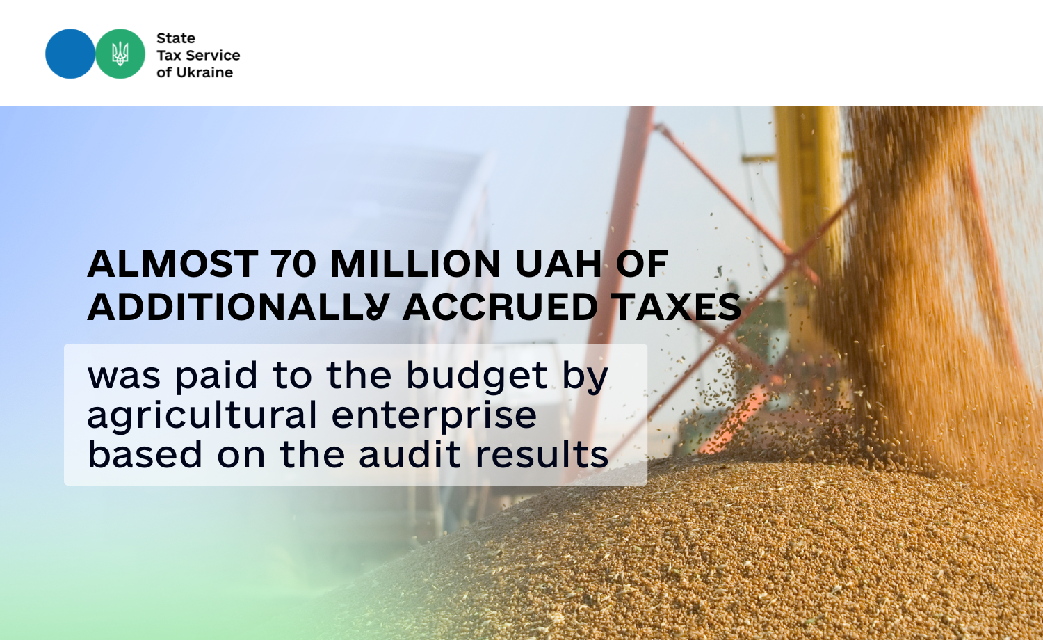 Almost 70 million UAH of additionally accrued taxes was paid to the budget by agricultural enterprise according to the audit results