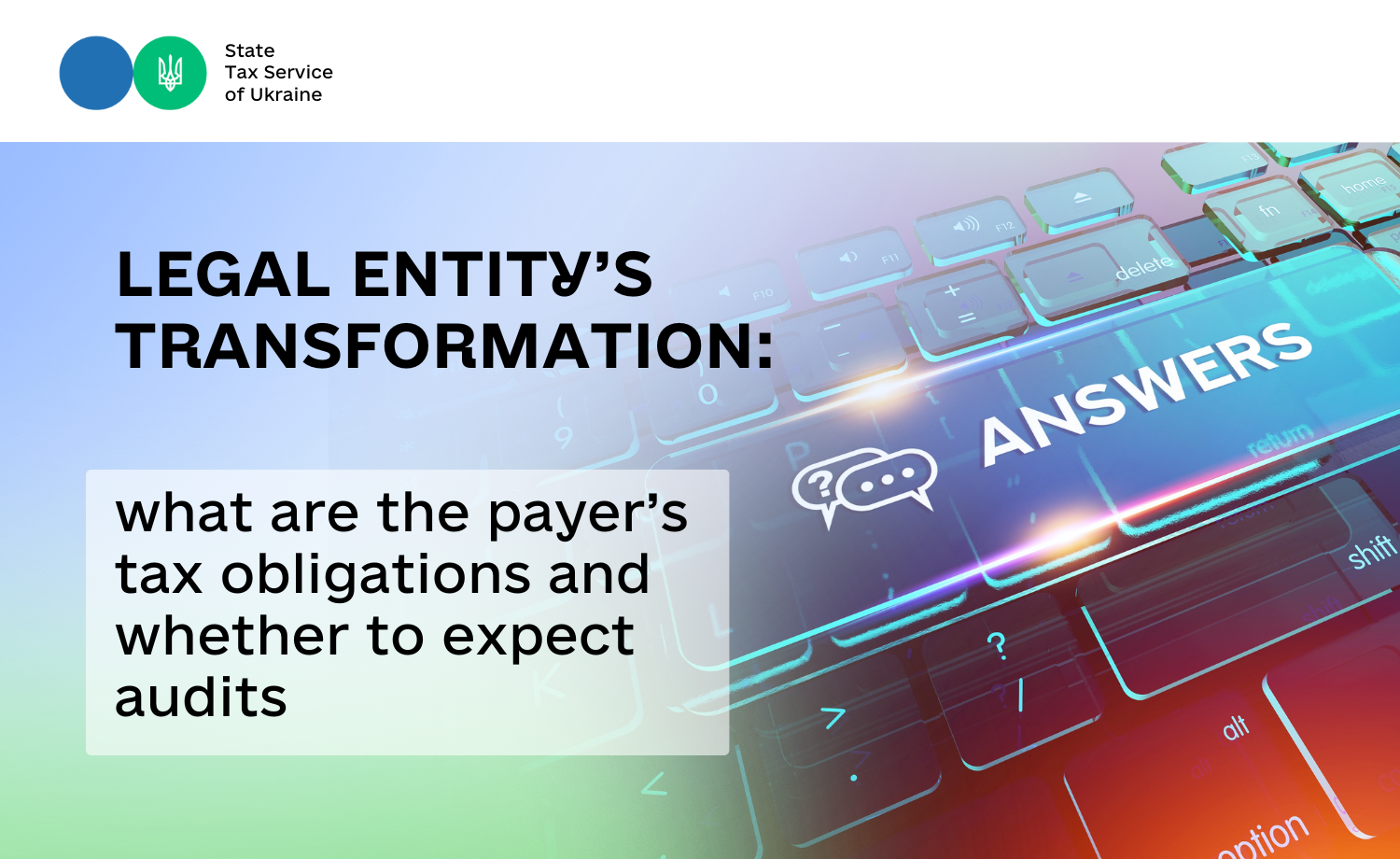 State Tax Service of Ukraine has prepared answers to actual questions of the taxpayers regarding audits, VAT, declarations, registration actions and transfer of indicators in the reorganization case of legal entities through transformation (change in the organizational and legal form of the enterprise).
