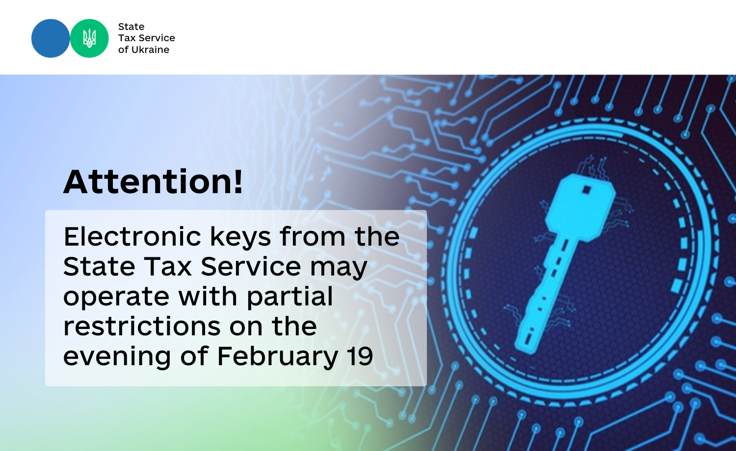 Attention! Electronic keys from the State Tax Service may operate with partial restrictions on the evening of February 19