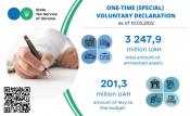 State Tax Service of Ukraine informs that 3247.9 million UAH has been declared since the beginning of one-time (special) voluntary declaration campaign of individuals’ assets.