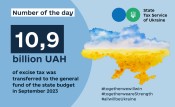 General fund of the State Budget of Ukraine received excise tax from excisable goods (products) produced in Ukraine and imported to the customs territory of Ukraine in the amount of 10.9 billion UAH in September 2023.