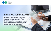 Exemption from paying single contribution for individuals-entrepreneurs and other self-employed persons is extended from October 1, 2025