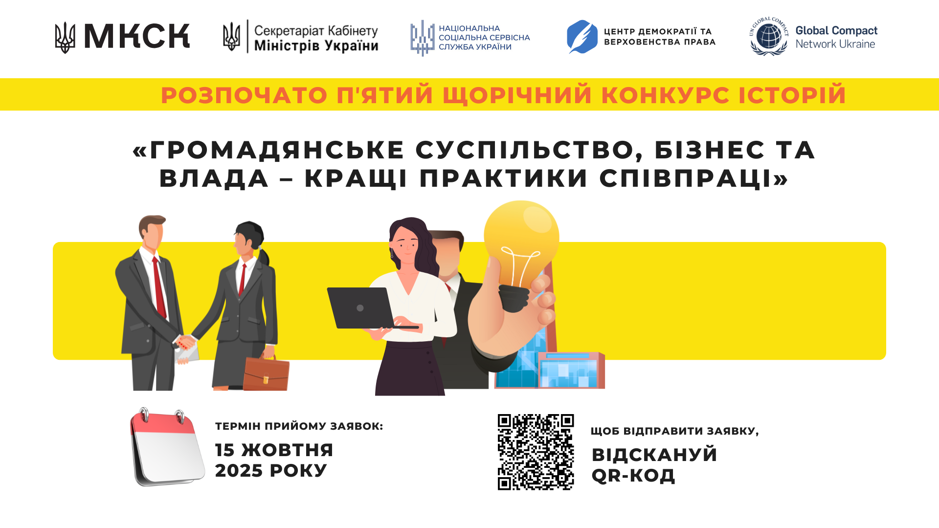 Заявки приймаються до 15 жовтня 2025 року. За результатами конкурсу буде підготовлено та оприлюднено збірник історій про найуспішніші спільні ініціативи.