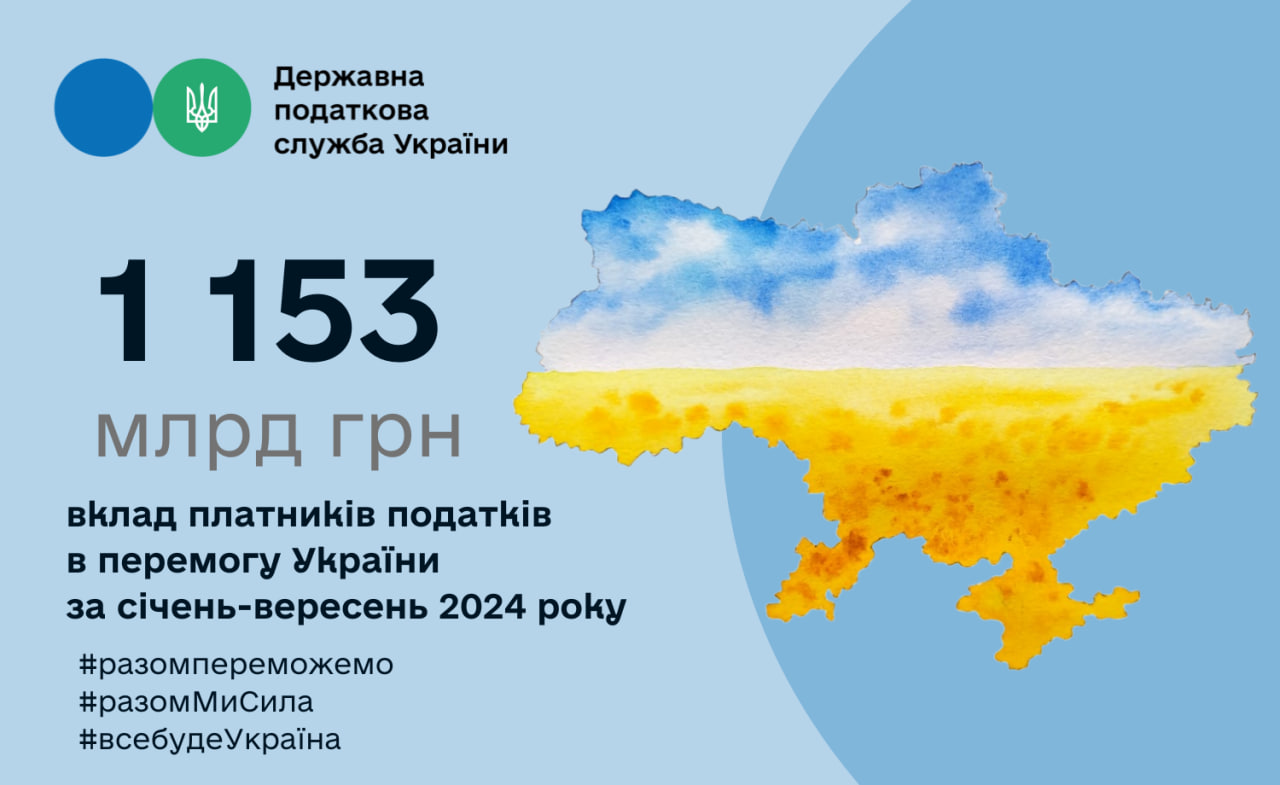 До зведеного бюджету у січні – вересні 2024 року надійшло 1153 млрд гривень