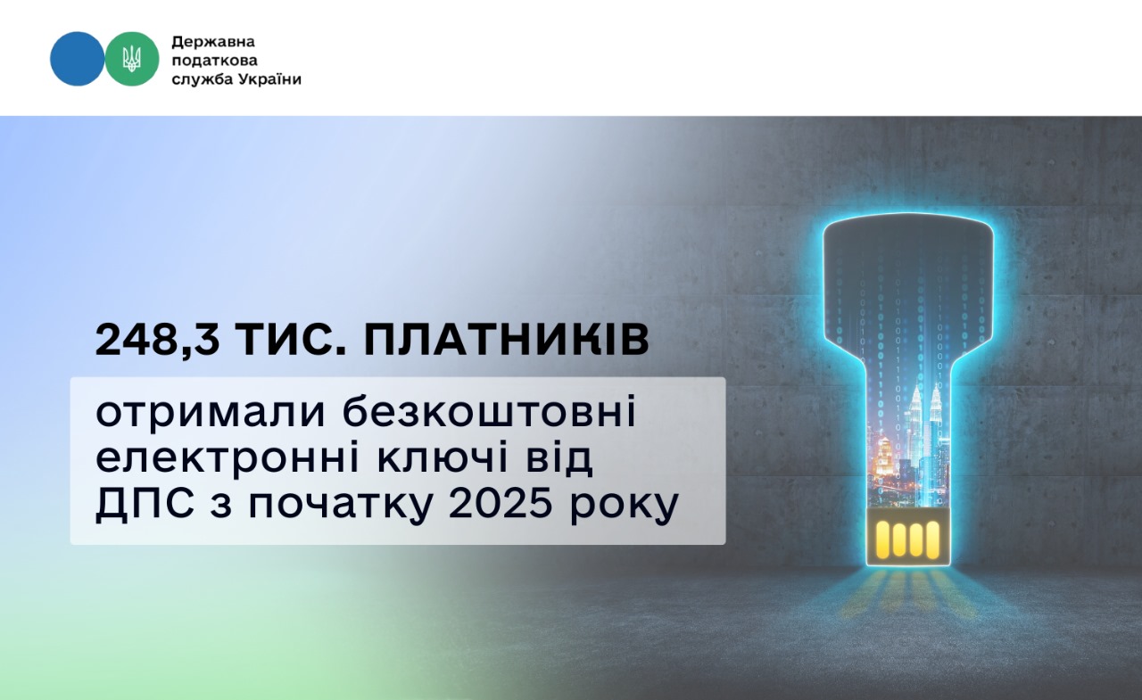 248,3 тис. платників отримали безкоштовні електронні ключі від ДПС з початку 2025 року