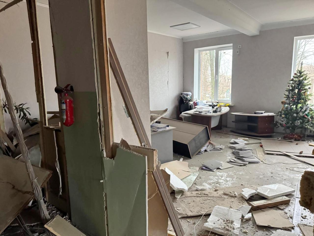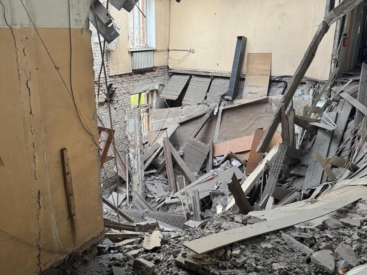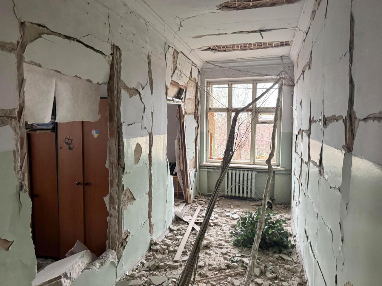 За словами Лесі Карнаух, у самій будівлі  зруйновані перекриття, пошкоджений фасад, вибиті вікна.