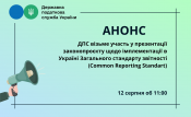 Представники ДПС візьмуть участь у презентації законопроєкту щодо імплементації в Україні Загального стандарту звітності (Common Reporting Standart)